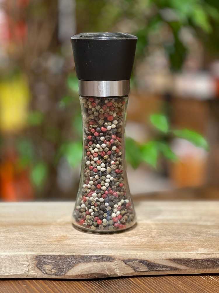 Masale Cam Değirmen Renkli Tane Top Biber, özenle seçilmiş renkli biber tanelerinden hazırlanmıştır. Cam gövdesi sayesinde biberin kalitesi korunur ve ergonomik tasarımı ile yemeklerde veya tariflerde pratik kullanım sağlar.