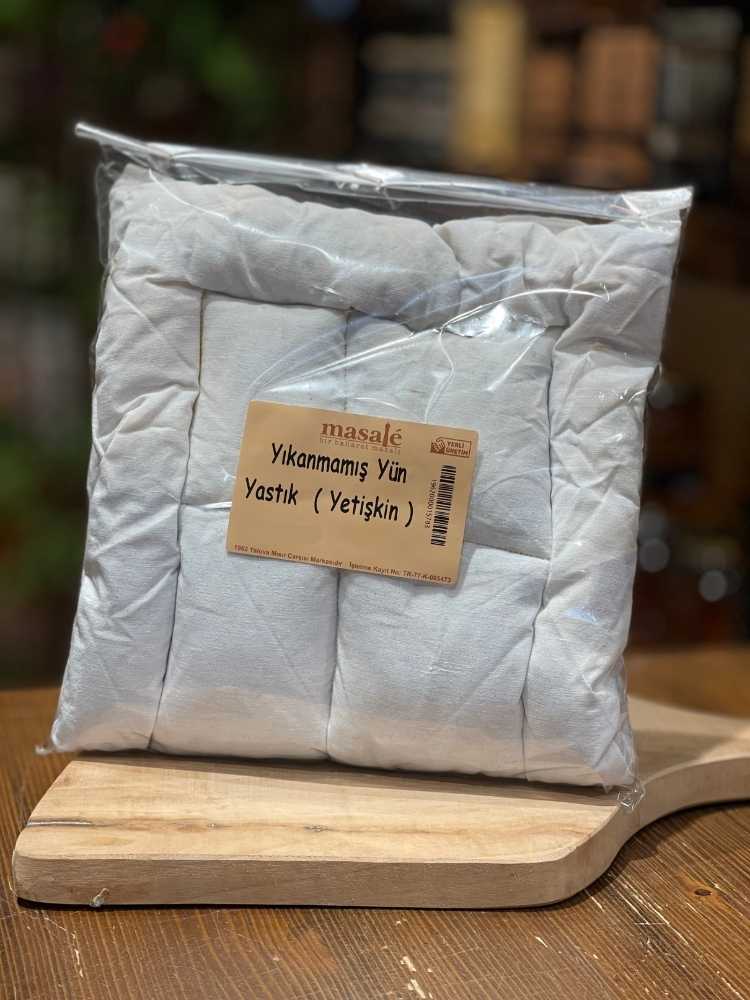 Masale Yıkanmamış Yün Yastık (Yetişkin), doğal yün kullanılarak özenle hazırlanmış bir uyku destek ürünüdür. Bitkilerle temas etmiş koyun yünü, doğal özlerini ve lanolin maddesini içerir; bu sayede yastık doğal yapısını ve aromatik dokusunu korur.